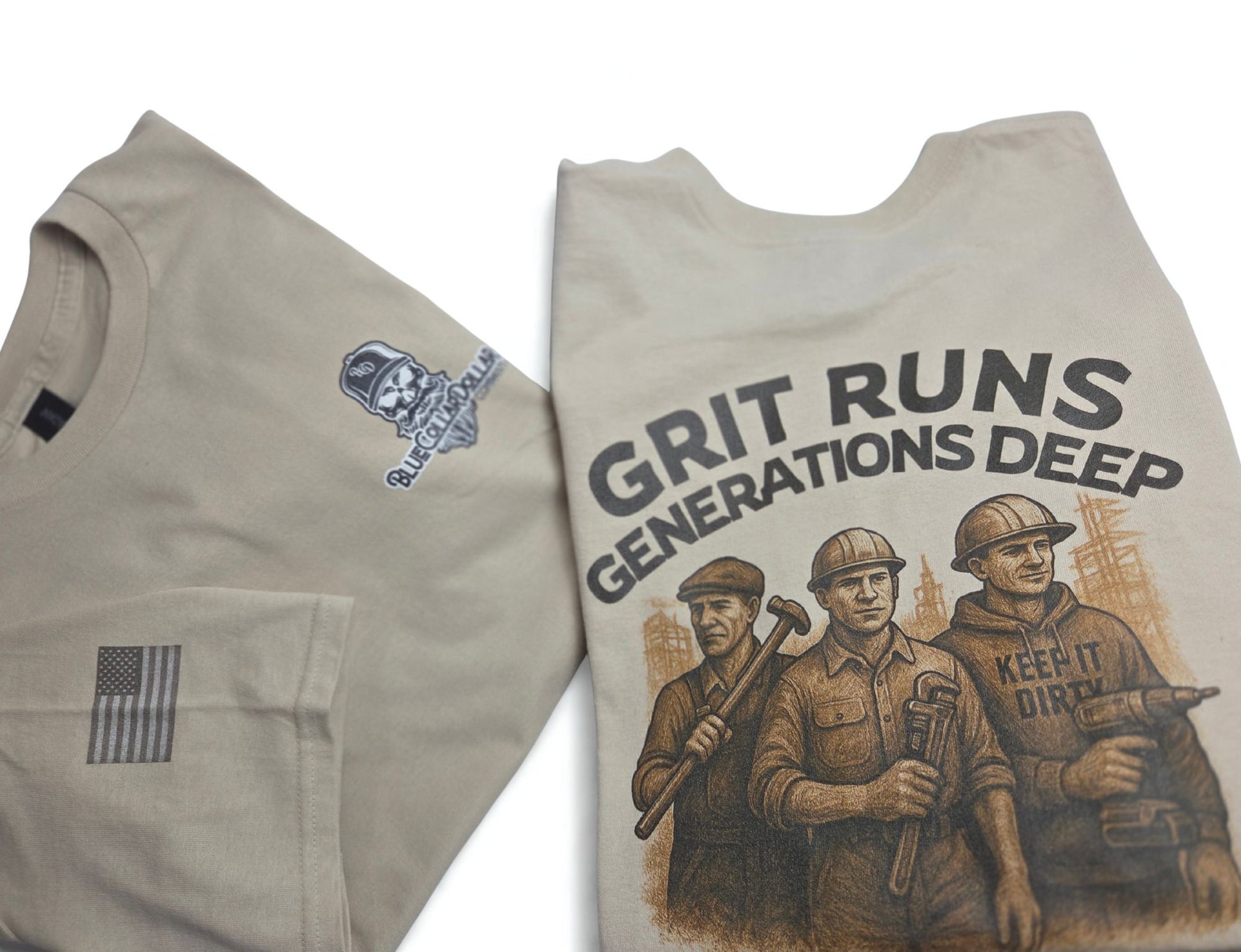 “Grit Runs Generations Deep” honors the bloodline of builders, fixers, welders, lifters, and grinders. The men who didn’t just chase the American Dream — they poured the concrete for it.
