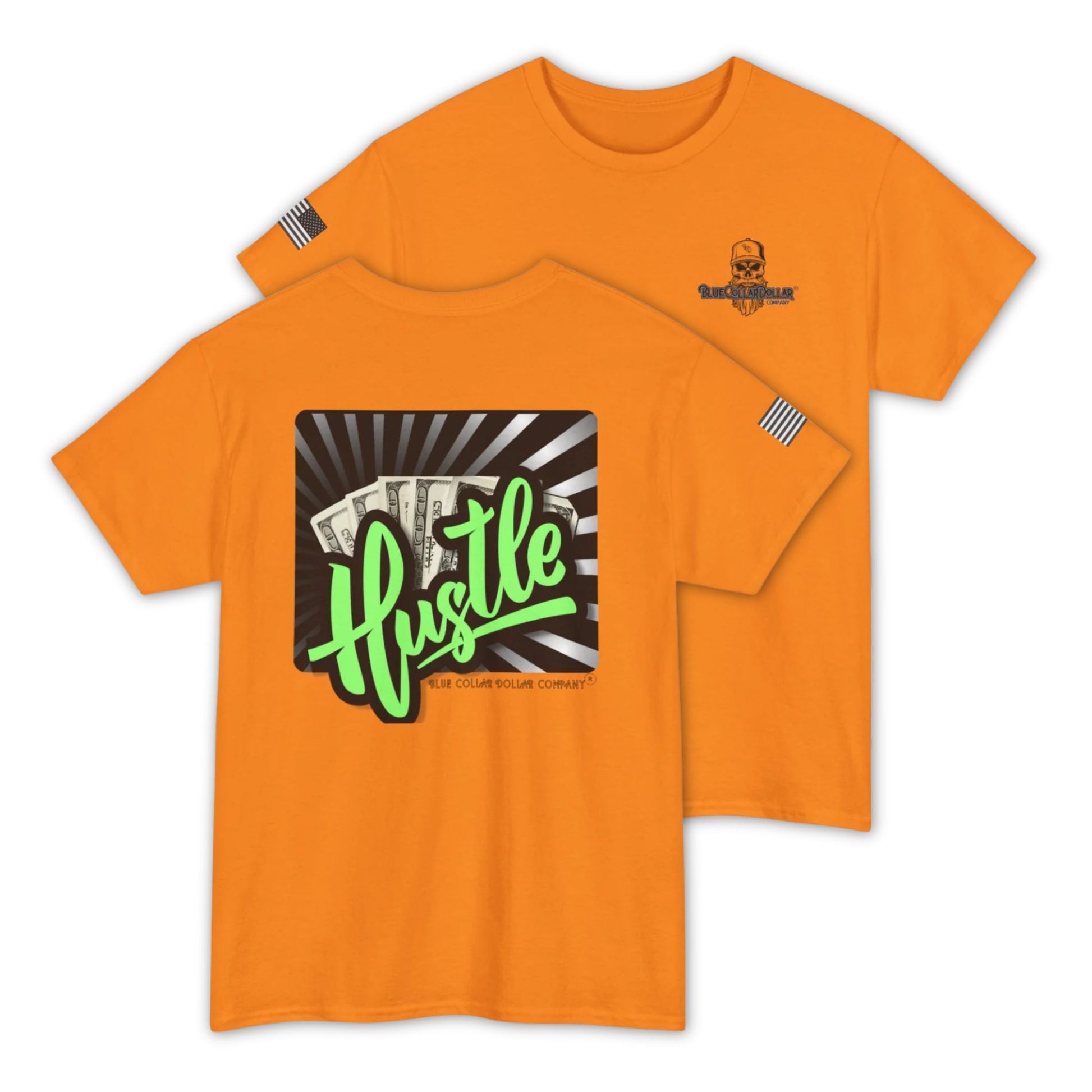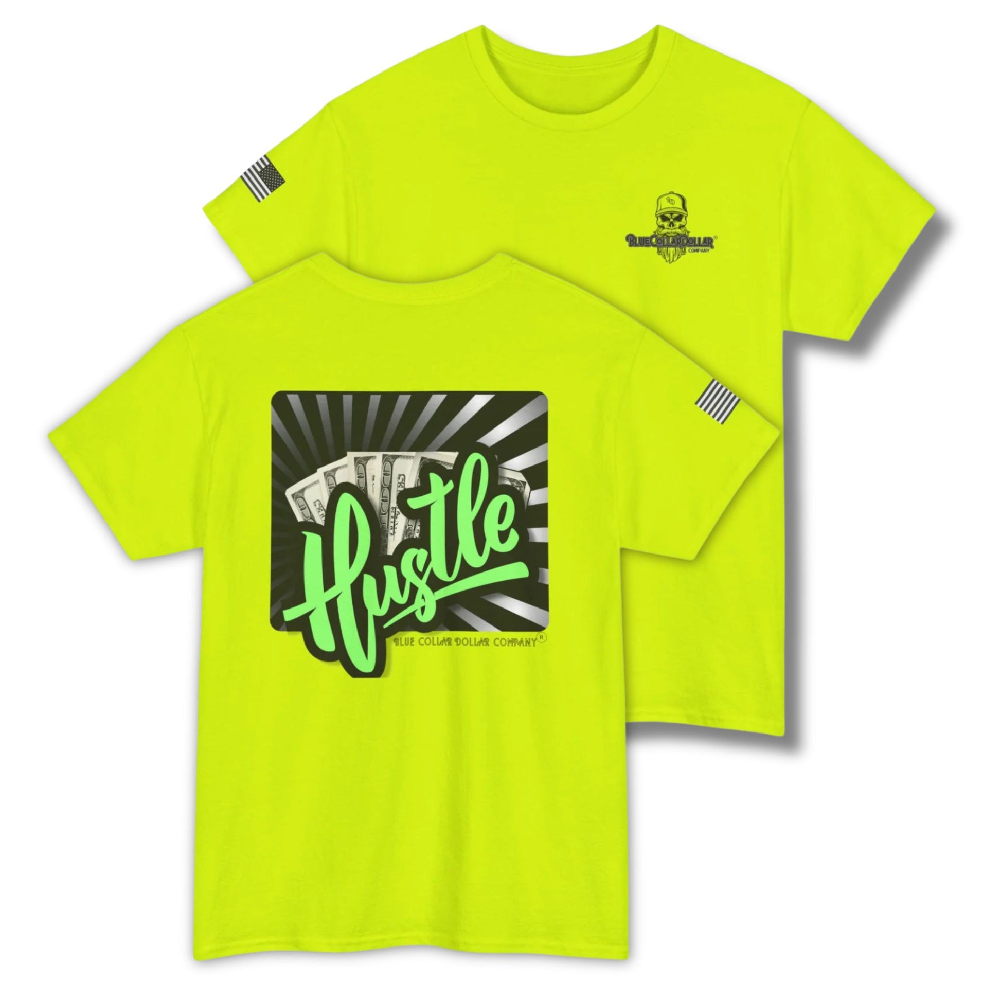 This shirt was made for the ones who put in the hours, chase the paycheck, and never wait for opportunity to knock. Featuring bold green lettering over a backdrop of cold hard cash. The Hustle t-shirt from Blue Collar Dollar Co. is a tribute to every early morning, every late night and every grind in between.