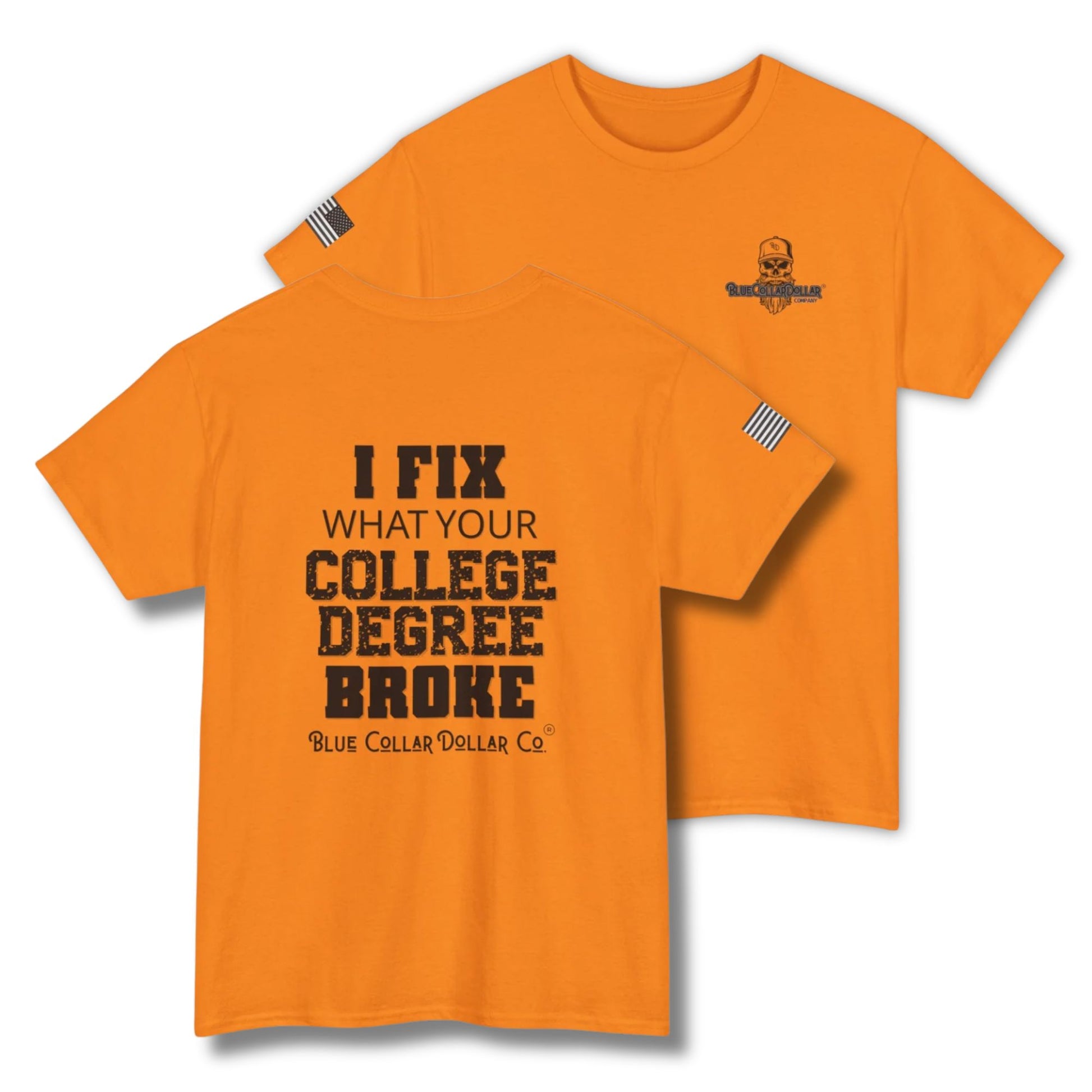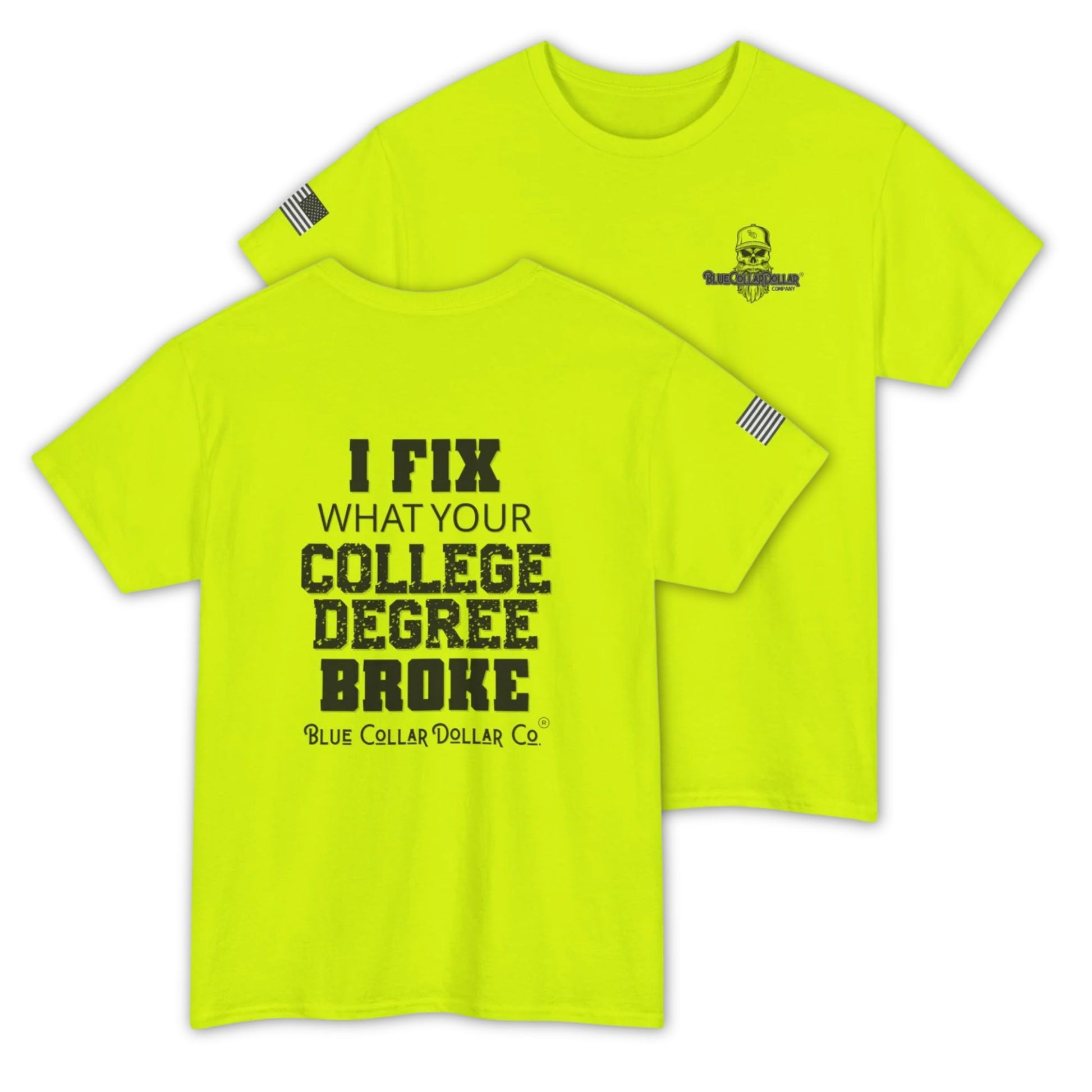 I Fix What Your College Degree Broke – Funny Hi-Viz Safety Work Shirt