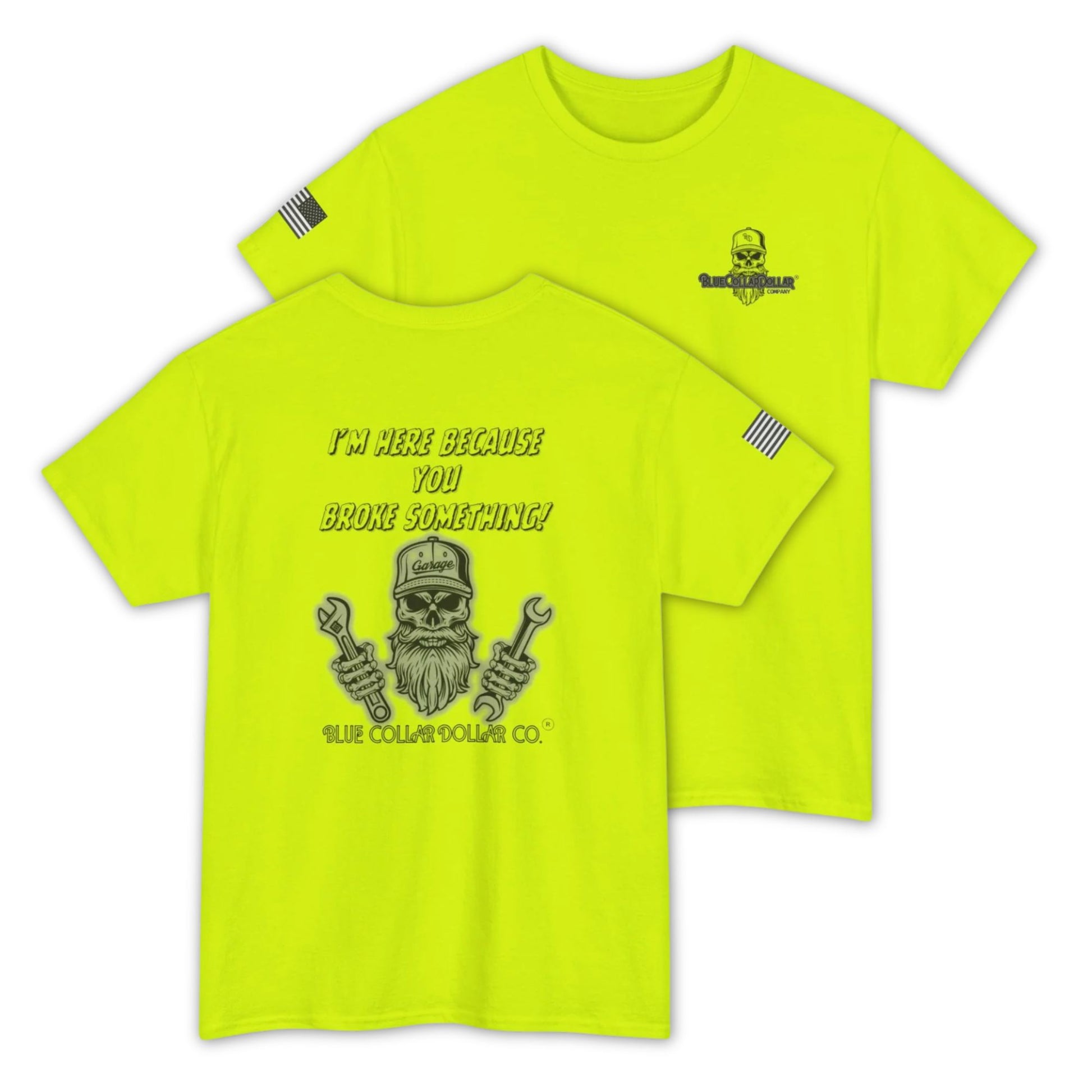I’m Here Because You Broke Something! – Funny Hi-Viz Safety Work Shirt