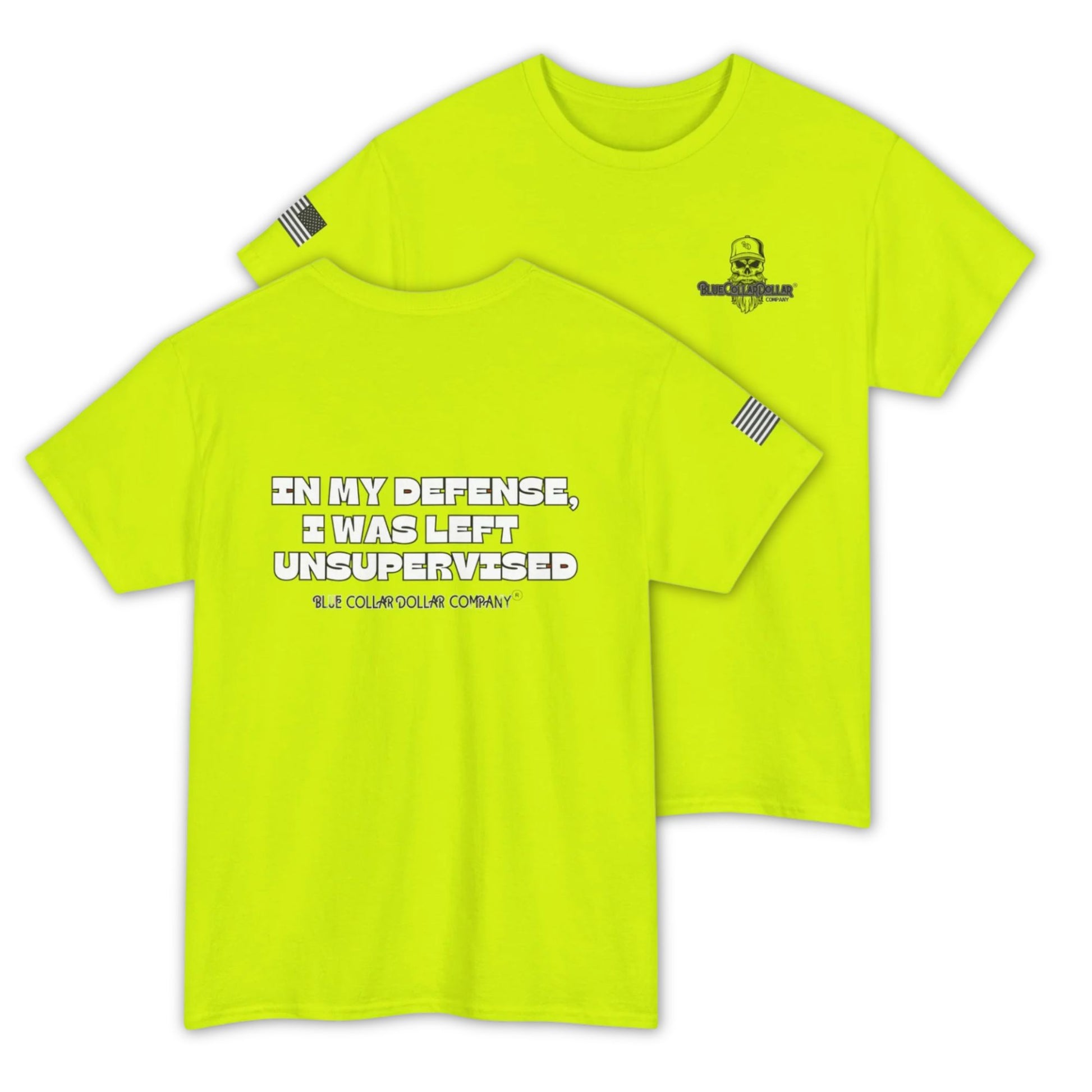 Some shirts just keep you visible. This one makes the whole crew laugh. Our funny hi-viz safety work shirt “In My Defense – I Was Left Unsupervised” is built for the bold, the gritty, and the ones who stir the pot on the job site.